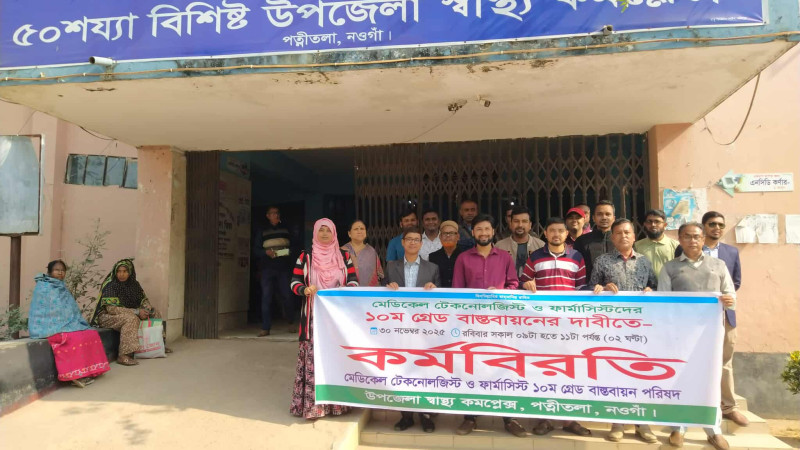 পত্নীতলায় মেডিকেল টেকনোলজিস্ট ও ফার্মাসিস্টদের কর্মবিরতি